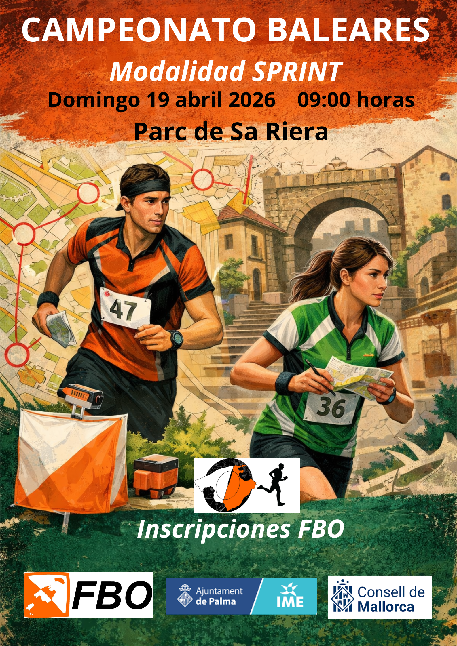 El próximo domingo 19 de abril a las 9 horas se celebrará el Campeonato de Baleares de Orientación, modalidad SPRINT en el Parc de Sa Riera. Al finalizar la carrera para federados, se celebrará una prueba solidaria para la fundación RESPIRALIA, que lucha contra la fibrosis quística, donde podrá participar todo el mundo que esté interesado, previa inscripción a la misma que se publicará igualmente en nuestra página web.